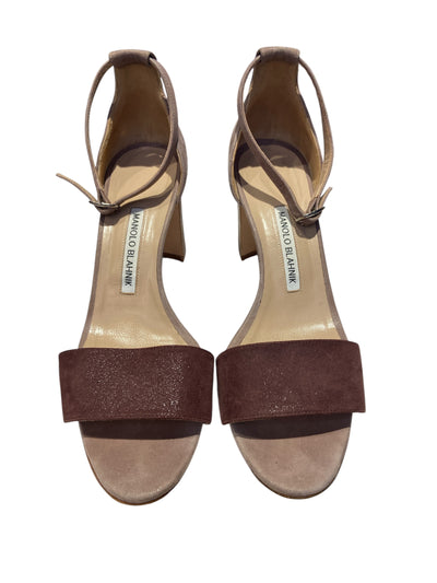 Marc Fisher Women Size 9.5 M Tan Color Block Heels Ankle Strap Sandals Shoes