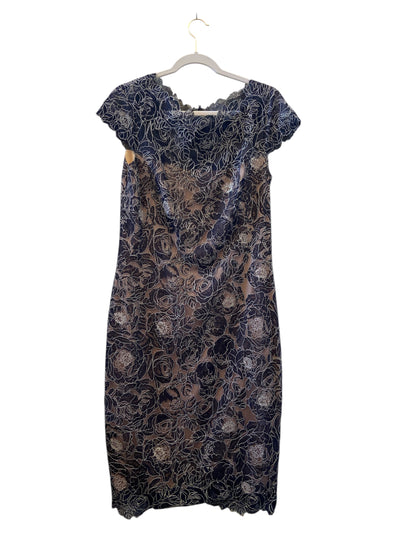 TADASHI SHOJI ROSE MOTIF NAVY FLORAL LACE CAP SLEEVE SIZE 10 DRESS