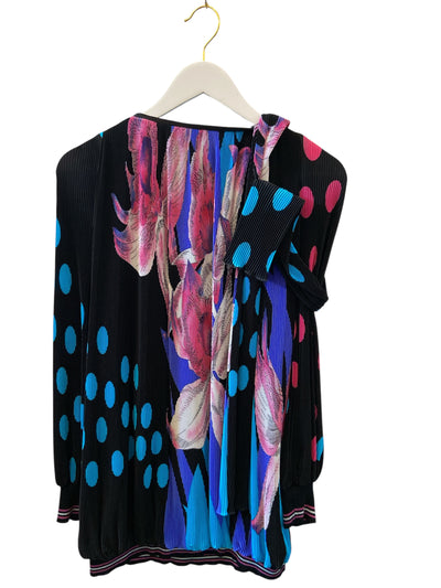 VINTAGE VIRGINIE PARIS ACCORDIAN FLORAL BLOUSE MEDIUM DRESS
