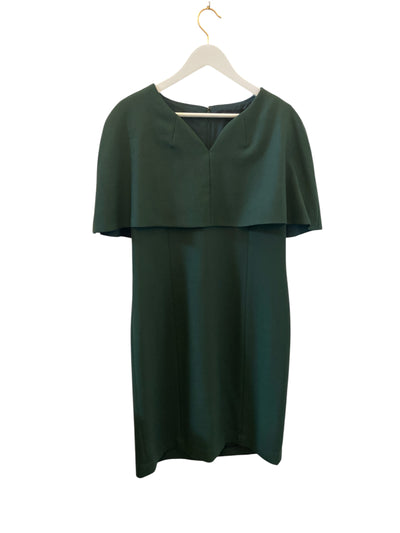 WORTH NEW YORK CAPE SHEATH SIZE 14 DARK GREEN WOOL BLEND DRESS