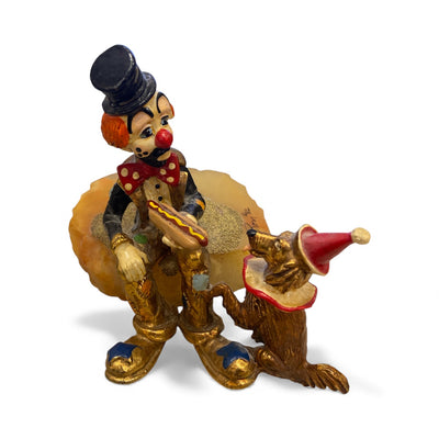 VINTAGE RON LEE CLOWN FIGURINE SHARING HOTDOG WITH DOG ONYX BASE