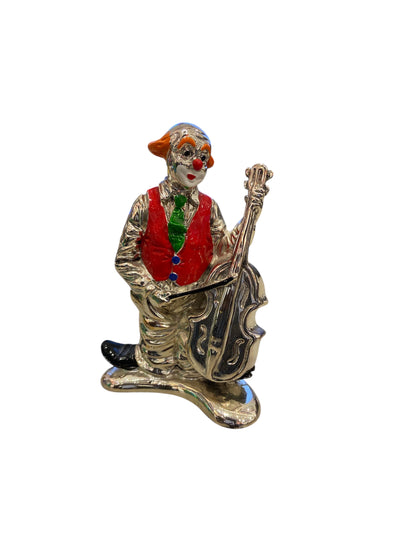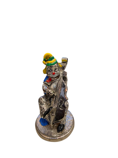 VINTAGE SILVER PLATED CLOWN FIGURINE PLAYING CELLO OR DOUBLE BASS COLLECTIBLE