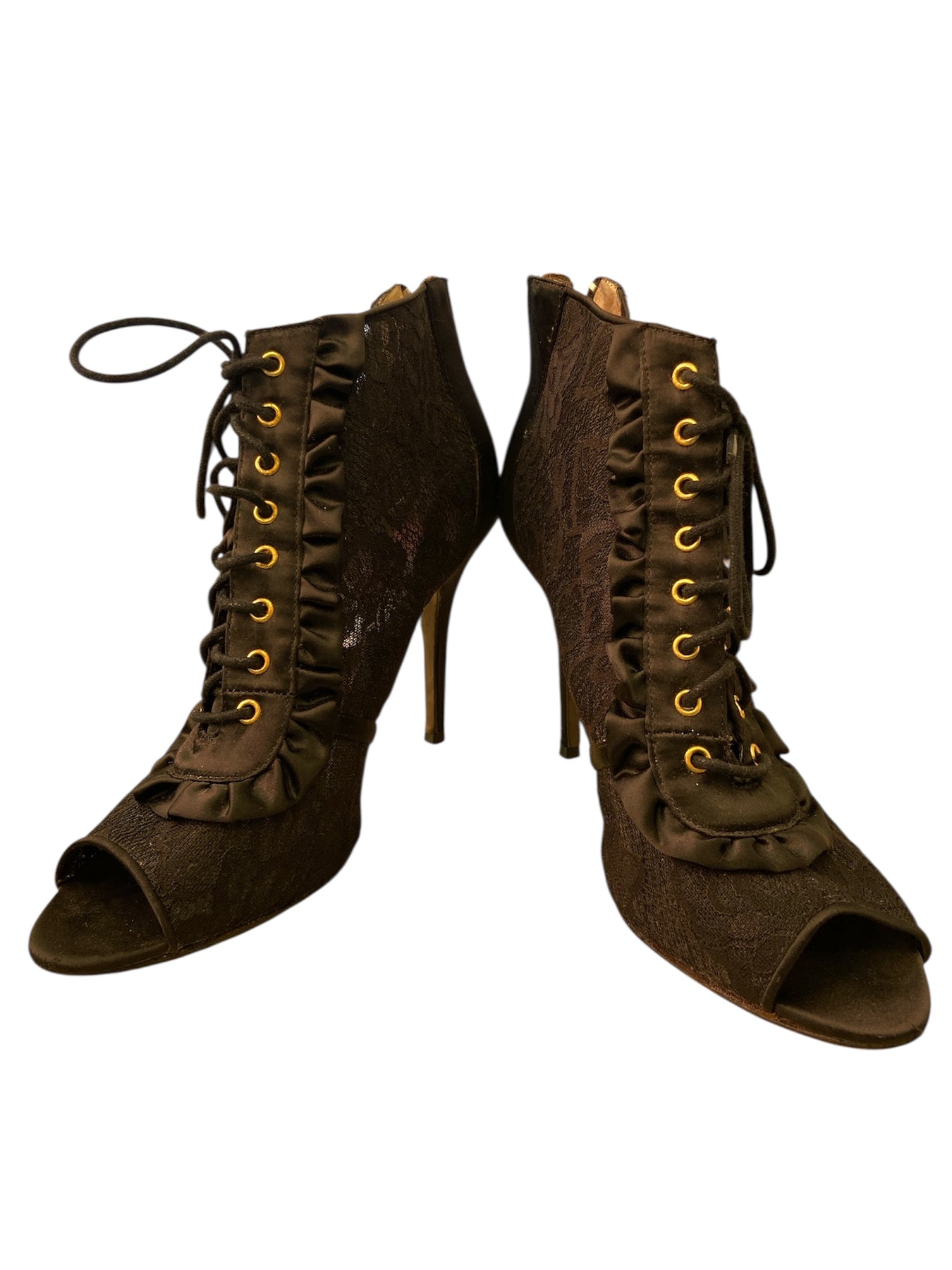 BETSEY JOHNSON PEEP TOE LACE BOOT HEEL SIZE 10