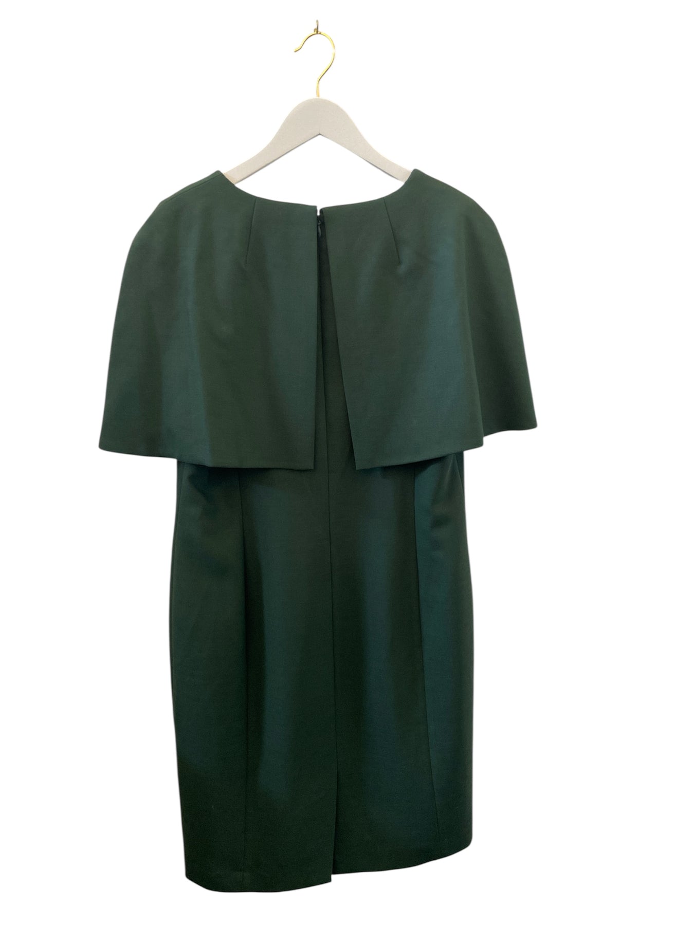 WORTH NEW YORK CAPE SHEATH SIZE 14 DARK GREEN WOOL BLEND DRESS